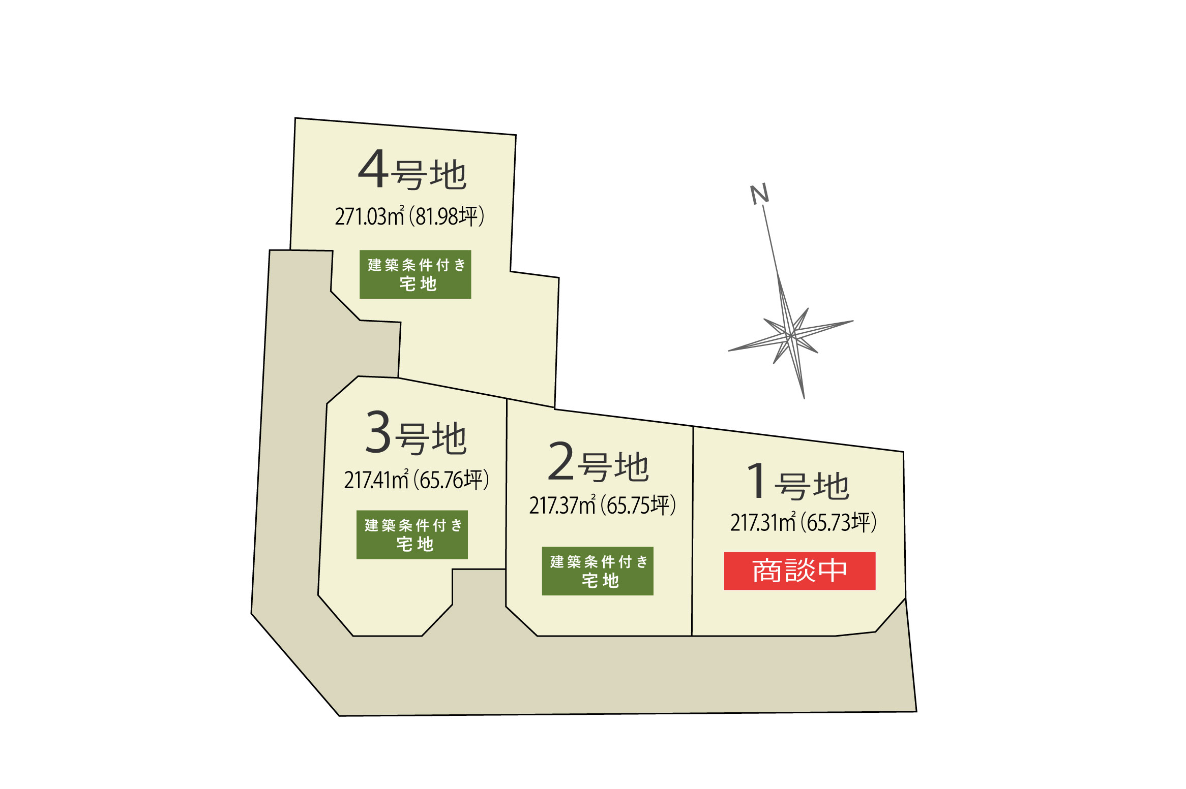 条件付き宅地とは土地売買契約締結後、3ヶ月以内売主と建築請負契約を締結していただくことを条件とし、期間中に住宅を建設しないことが確定したとき、又は住宅の建築請負が成立しなかった場合には土地売買契約は白紙となり、受領した金銭は全額お返しいたします。