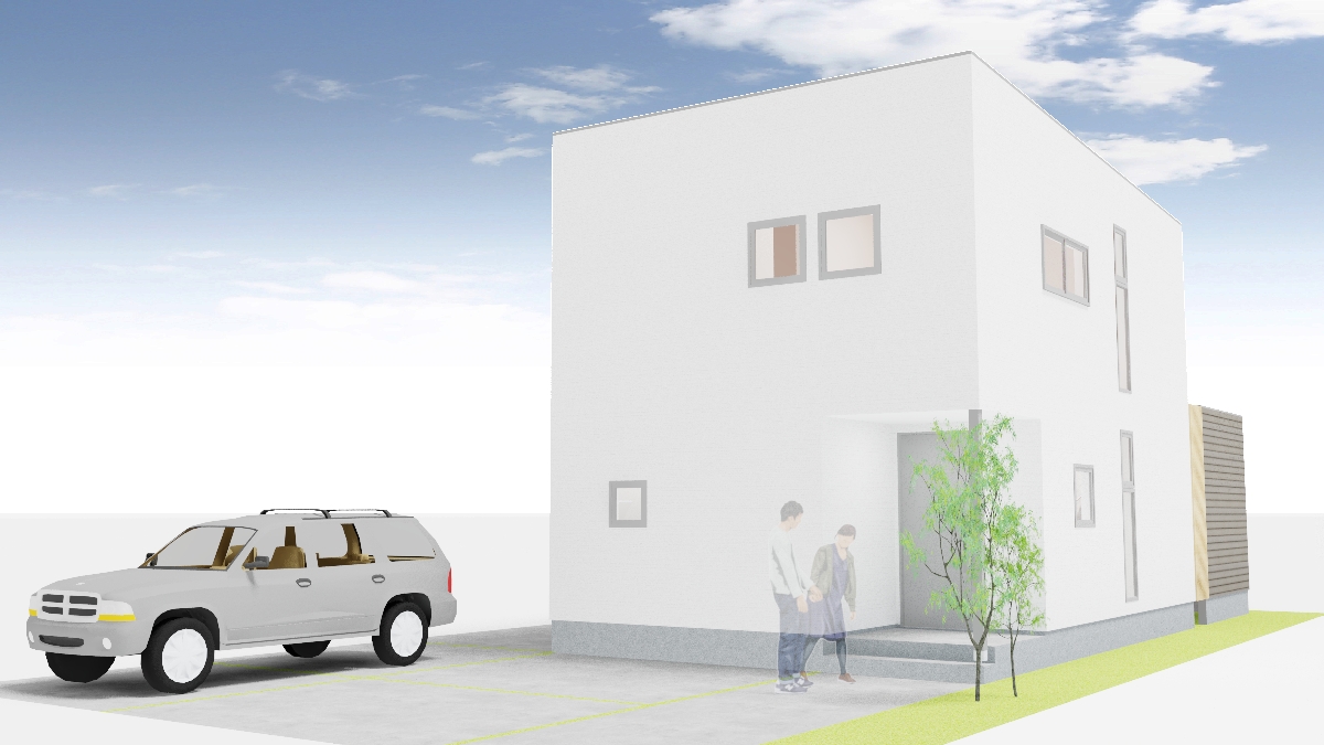 - 外観 :白い外壁×箱型のシンプルモダン。青空に映える洗練デザイン。
